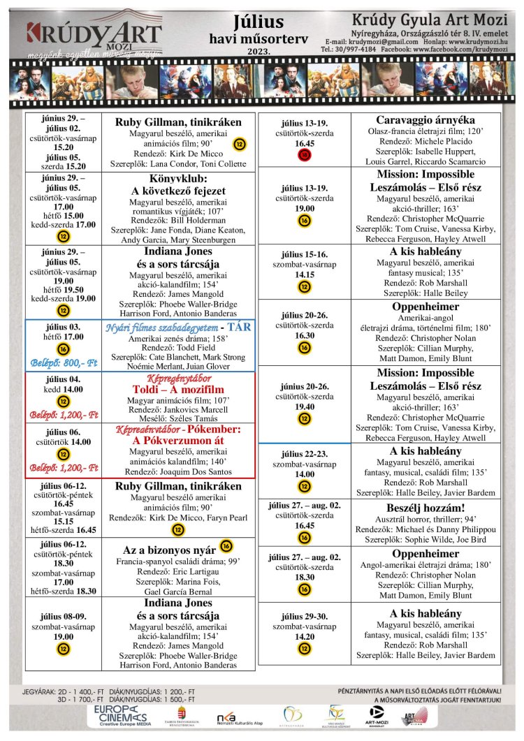 A Krúdy Gyula Art Mozi júliusi filmkínálata