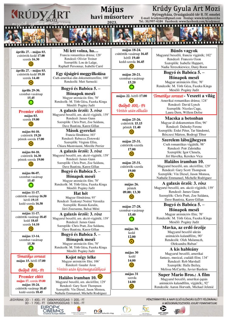A Krúdy Gyula Art Mozi májusi filmkínálata