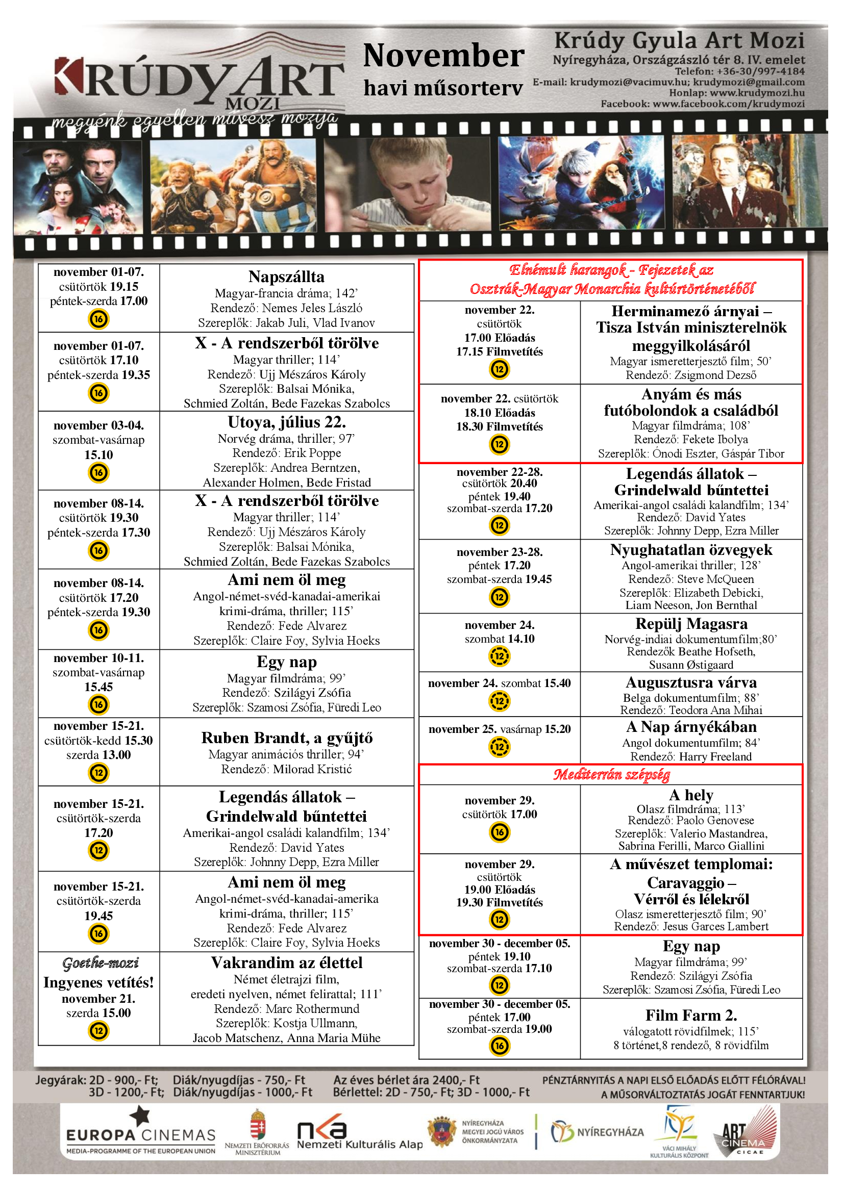 A Krúdy Gyula Art Mozi novemberi filmkínálata