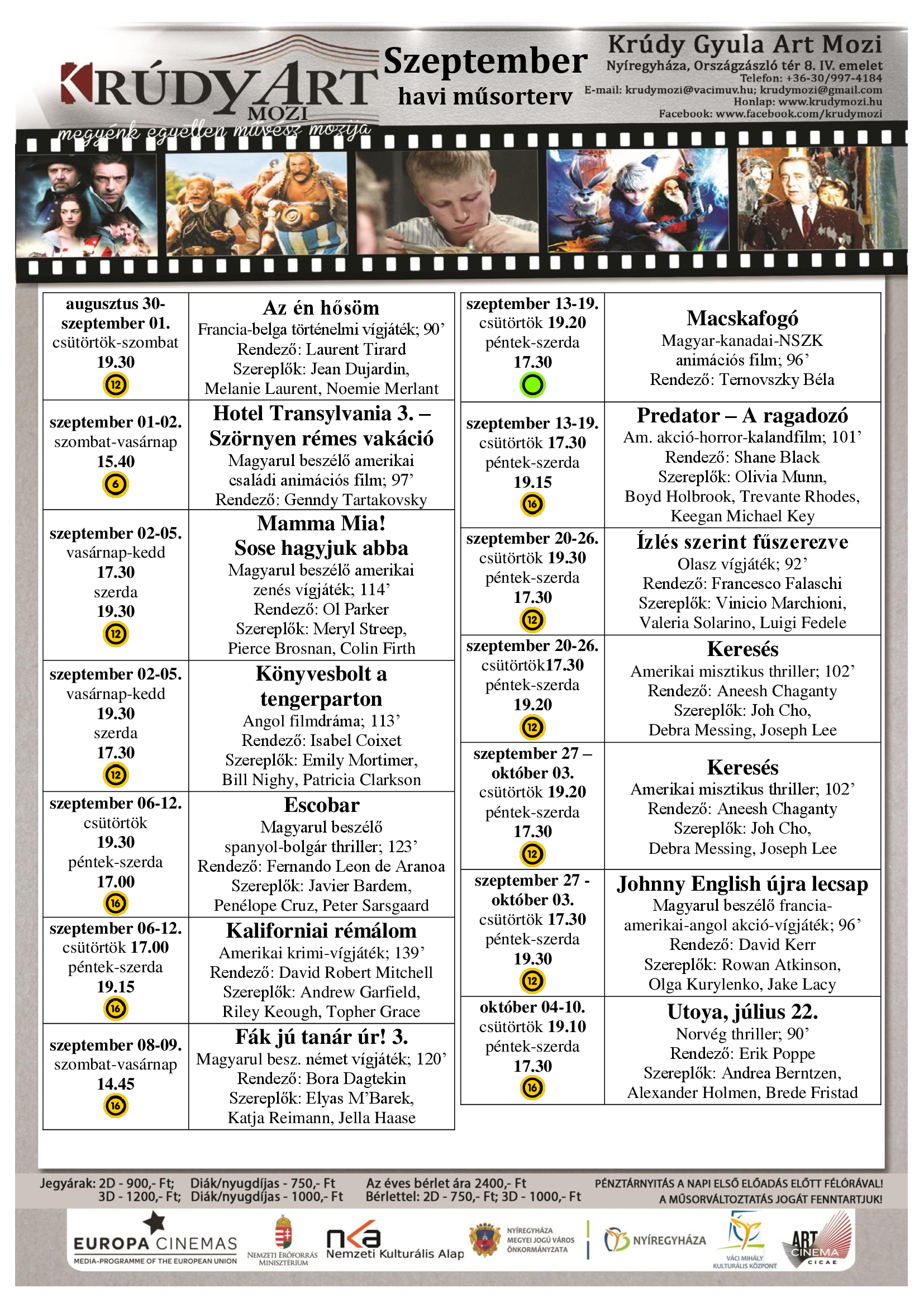 A Krúdy Gyula Art Mozi szeptemberi filmkínálata