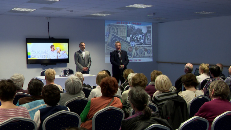 Újabb előadásra várták az időseket a Kelet-magyarországi Szépkorúak Akadámiája rendezvénysorozat keretein belül, ahol ezúttal a magyar pénznem, a forint alakulásának, illetve annak különböző formai megjelenésének 80 éves történetébe vezették be az érdeklődőket. Az eseményre most is sokan regisztráltak – a program állandó látogatói mellett olyanok is voltak, akik először csatlakoztak a rendezvényhez. Pelikán Istvánné rendszeres látogatója a kulturális központ programjainak, a Szépkorúak Akadémiáján korábban azonban még sosem volt.