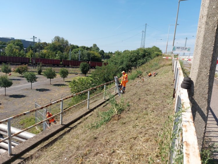 A Tiszavasvári úti felüljáró és a járda gyomtalanítását végzik, különösen odafigyelve a parlagfűfélék eltávolítására.