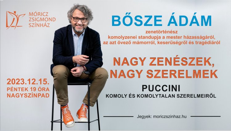 December 15-én, pénteken 19 órától Bősze Ádám zenetörténész komolyzenei standupját: a „Nagy zenészek, nagy szerelmek”- Puccini-epizód címmel láthatják az érdeklődők a Nagyszínpadon, Puccini komoly és komolytalan szerelmeiről, a mester házasságáról, az azt övező mámorról, keserűségről és tragédiáról.
