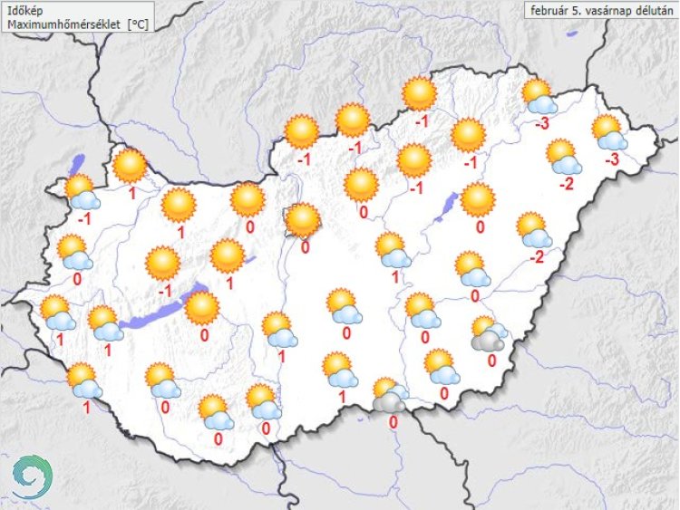 A legmagasabb nappali hőmérséklet döntően 0 fok körül valószínű. Késő estére -9 és -1 fok közé hűl le a levegő – olvasható az Országos Meteorológiai Szolgálat.
