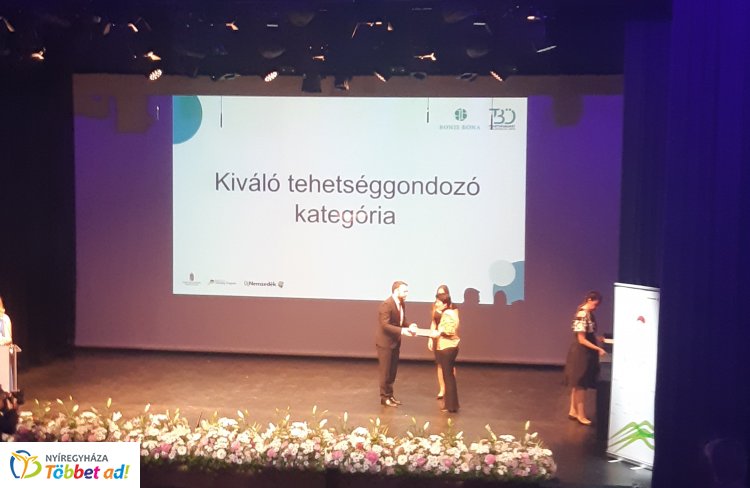 Bonis Bona - A nemzet tehetségeiért díjban részesült Ben Slimenené Czipa Boglárka Piroska, a Nyíregyházi Kölcsey Ferenc Gimnázium magyar-orosz-francia szakos pedagógusa. A tanárnő az elismerést Budapesten, az Országos Tehetséggálán vette át a Hagyományok Házában az Innovációs és Technológiai Minisztérium államtitkárától június 6-án.