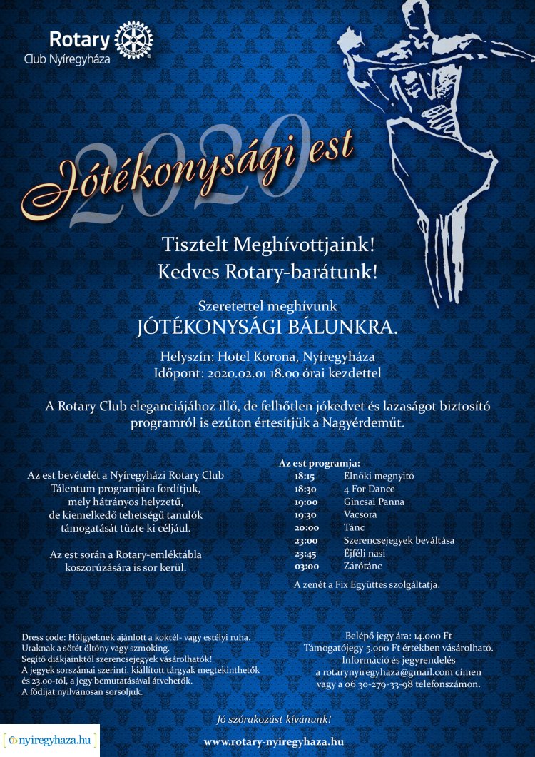 (A Nyíregyházi Rotary Klub Jótékonysági Bált szervez február elsején )