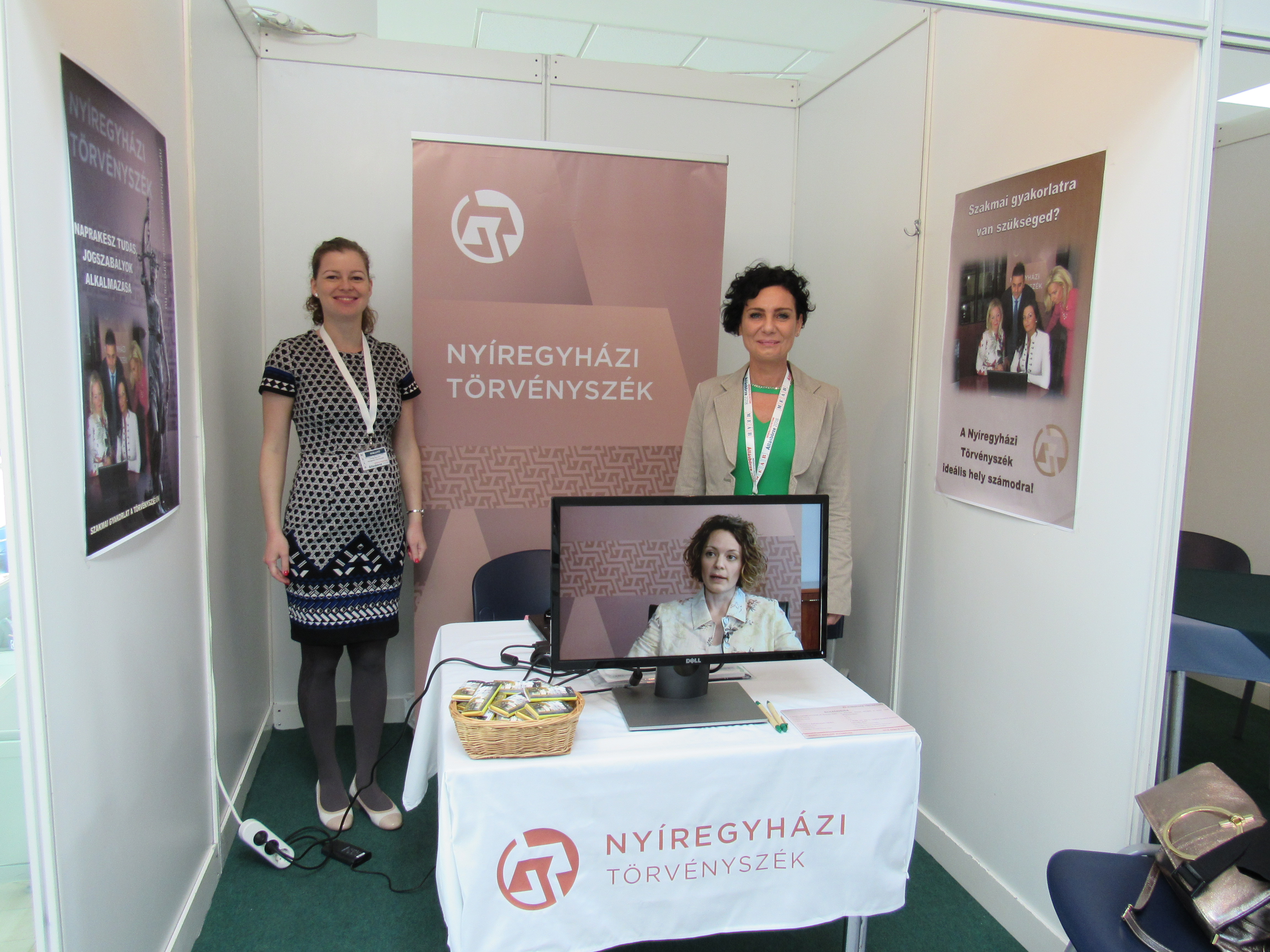 A Nyíregyházi Törvényszéket a Szakmai Gyakorlati Börzén Dolhainé dr. Mészáros Zsófia fogalmazó és dr. Kaptáné dr. Endrédi Emese bírósági titkár képviselte. A törvényszék azoknak a joghallgatóknak kívánt segítséget nyújtani, akik joggyakorlatukat teljesítéséhez kerestek gyakorlati helyet. A bíróságokon biztosított gyakornoki lehetőség során a joghallgatók a törvényszék bíráinak mentorálásával szerezhetik meg a pályaoreintációhoz szükséges tapasztalatokat. A törvényszék standját leginkább a megyében lakó joghallgatók keresték fel, és jelezték, hogy szívesen töltenék gyakorlatukat a bíróságon. Többen konkrét pályázati anyaggal is érkeztek. Az érdeklődők rövid kvízkérdésekre is válaszoltak, melynek során számot adhattak a bírósággal kapcsolatos tudásukról. Nagy népszerűségnek örvendett a törvényszék épületét ábrázoló, ajándékba elvihető kis csoki, valamint sokan megtekintették a bíróság tevékenységét bemutató rövidfilmet is.