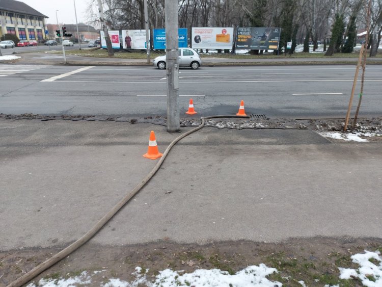 A Nyírtávhő szakemberei több helyszínen is forgalomkorlátozás mellett szivattyúzzák a csapadékvizet a belvárosban.