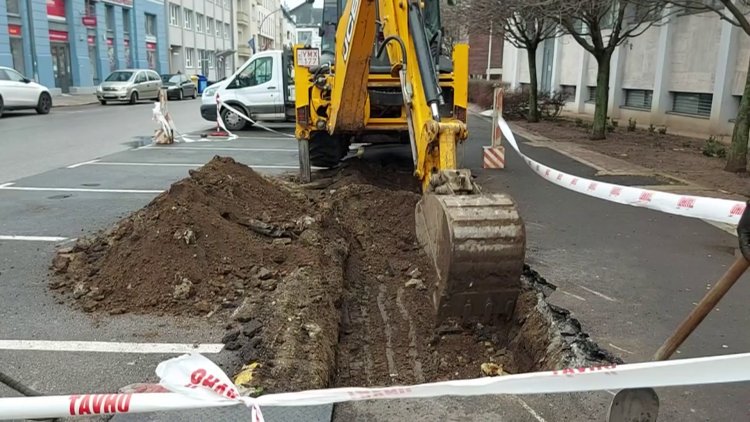A Nyírtávhő végez bontást egy távhővezeték törése miatt a könyvtár melletti járdán