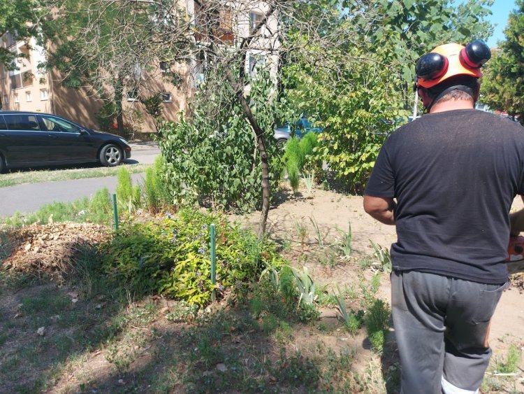 Ezzel egy időben megkezdte a társasházakra hajló ágak metszését is. A munkálatokat kisebb forgalomkorlátozás mellett tovább folytatják a napokban.