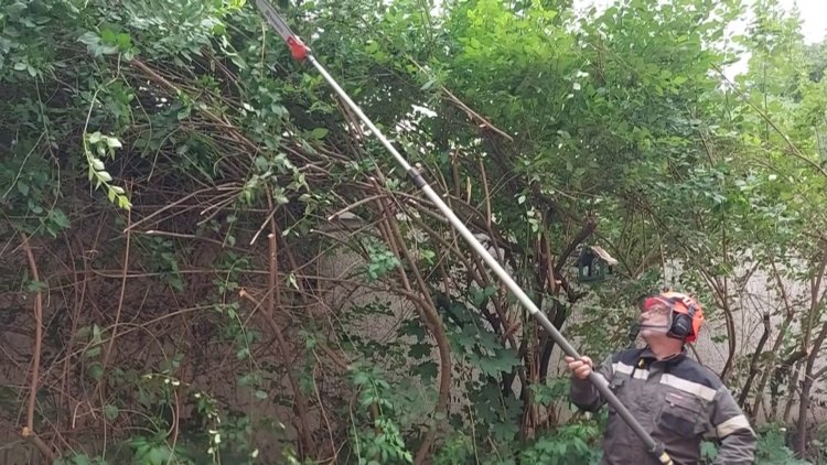 A NYÍRVV munkatársai az Ady Endre utca belső szervizútján faritkítási és -ápolási munkálatokat végeznek.