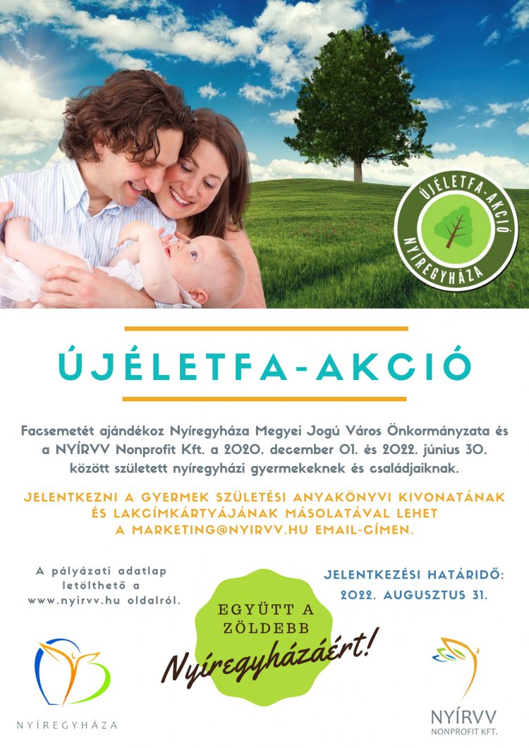 – Nagy örömünkre szolgál, hogy az elmúlt időszakban is sok-sok gyermek született városunkban. Nyíregyháza Megyei Jogú Város Önkormányzatával közösen Nekik és családjaiknak is lehetőséget szeretnénk nyújtani, hogy részt vehessenek az Újéletfa-akcióban – tájékoztatta szerkesztőségünket a NYÍRVV Nonprofit Kft.