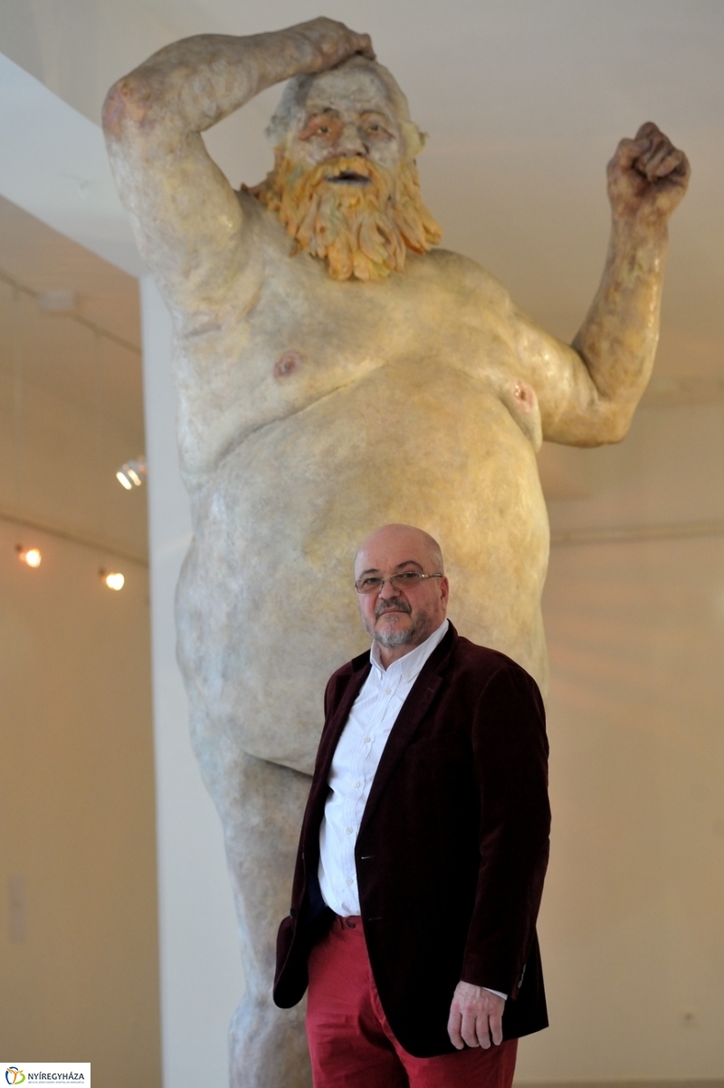 A Nyíregyházi Városi Galéria emeleti termeiben portrészobrokat láthatunk bronzba öntve és szilikon borítású műgyantából formázva, mellettük groteszk gyermekalak magasodik egy posztamensen, és fodrosan kövér figurák fürtökbe rendeződött tömege jelenik meg a művész vásznain. Van valami megfoghatatlanság, valami távoli ezekben a portrékban, pedig látszólag pontos megfigyelések és rutinos mozdulatok vezették az alkotó kezét. A Városi Galériából a Pál Gyula Terembe átsétálva pl. leülepedhet kicsit az első benyomás impressziója (már, ha a galériában kezdtük a sort), közben fejben leltárba vehetjük az egyes műveket és kezdünk is valami összegzés félét kialakítani magunkban, ami pillanatok múlva úgyis fenekestül fel lesz forgatva.