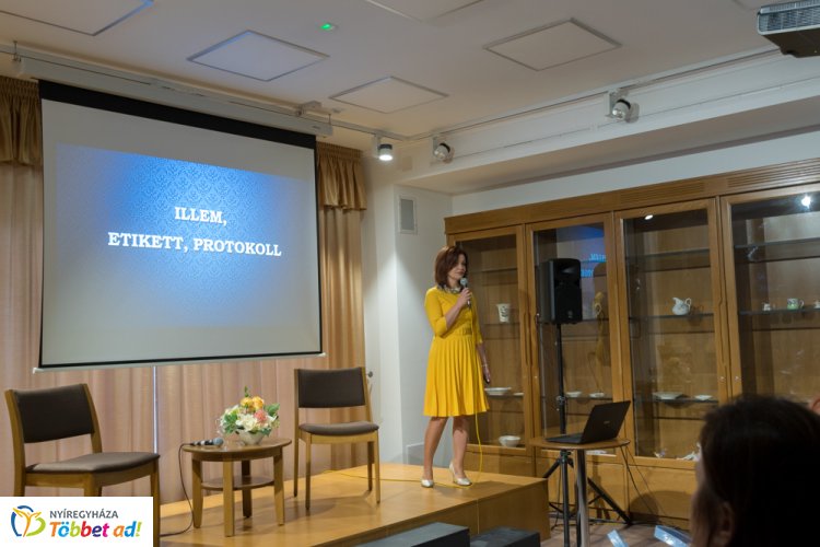 Ezzel a gondolattal nyitotta meg előadását Koncz Veronika. Az est során körbejárta az illem, etikett, protokoll fogalmait. A diplomáciai és állami protokolltól kezdve, az ízléses megjelenésen és étkezési kultúrán át, a hétköznapi viselkedési normákig rengeteg új, hasznos és érdekes információval szolgált.