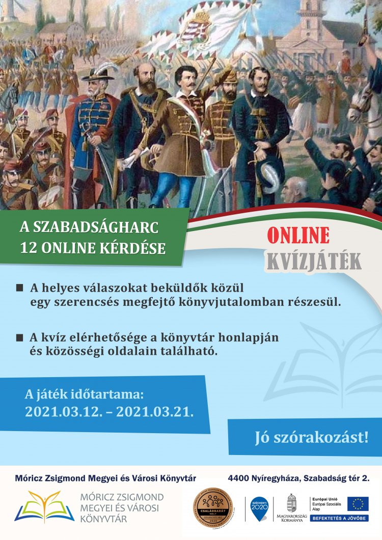A szabadságharc 12 online kérdése címmel kvízjátékot hirdet a Móricz Zsigmond Megyei és Városi Könyvtár. A kvíz elérhetősége az intézmény honlapján és közösségi oldalain található.