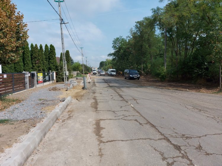 A Szélsőbokori út felújítási munkálatai tovább folytatódnak a szegélykövek lerakásával.