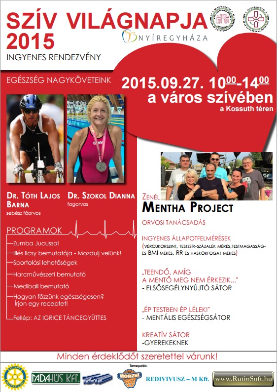 A jeles nap célja, hogy a szakemberek rávilágítsanak arra, hogy odafigyeléssel hosszabb, egészségesebb életet élhetnek az emberek. Az egészségügyi eseményt sport- és figyelemfelhívó előadások színesítik országszerte. Nyíregyházán a Szabó Lőrinc Tagiskolában tartottak felvilágosítást a gyerekeknek. Szeptember 27-én, vasárnap a Kossuth téren várják ingyenes állapotfelméréssel, orvosi tanácsadással és bemutatókkal a városlakókat. Nyíregyházán, a város szívében az egészségügyi programok mellett szórakoztató elfoglaltságok is várnak az érdeklődőkre.