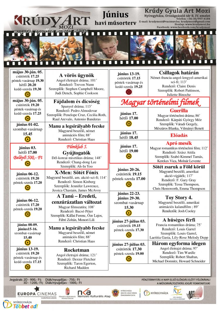 A tanú eredeti, cenzúrátlan változata, X-Men: Sötét Főnix, Toy Story 4. is szerepel a megye egyetlen művész mozijának júniusi filmkínálatában. (Részletes programterv)