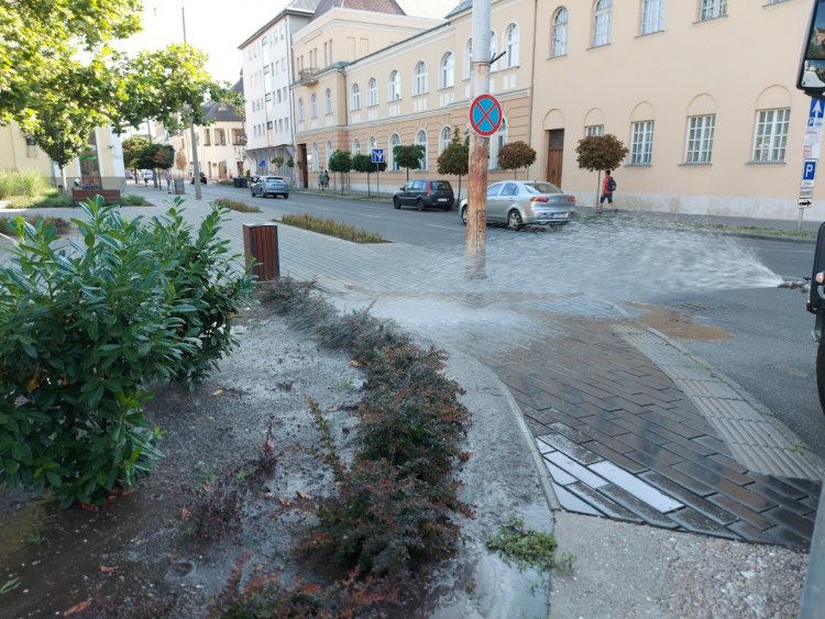A tartósan meleg időjárás miatt locsolnak a kora reggeli órákban Nyíregyházán is.