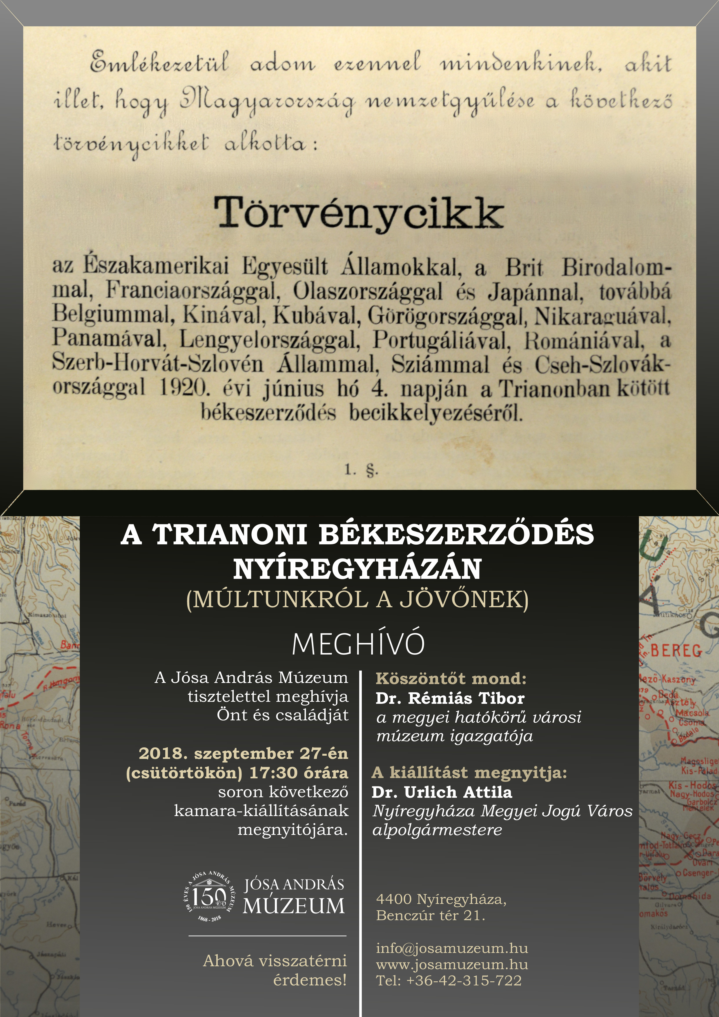 A trianoni békeszerződés Nyíregyházán - kiállítás
