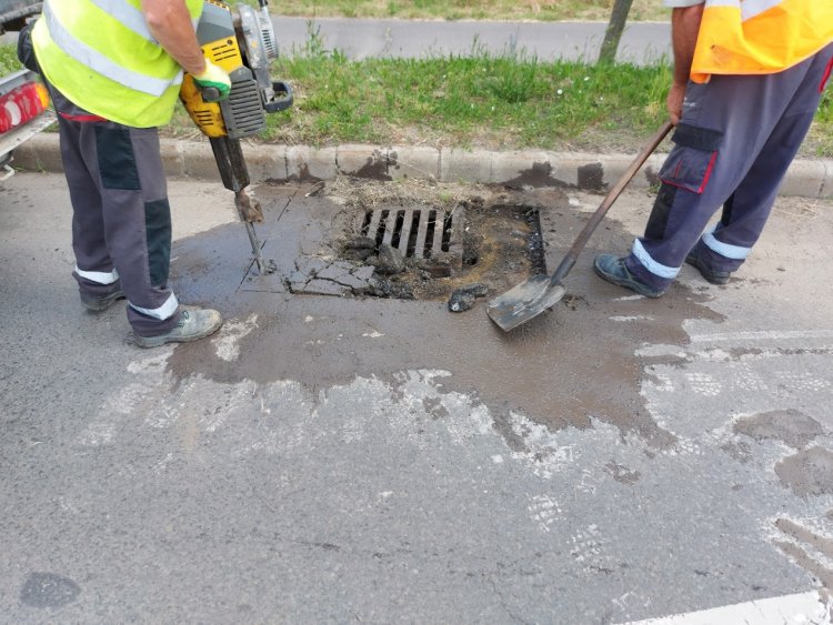 A város több pontján is a csapadékelvezető rácsok szintbehelyezését végzik a szakemberek