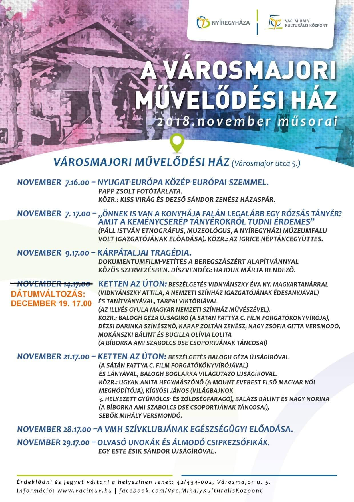 A Városmajori Művelődési Ház novemberi programajánlata