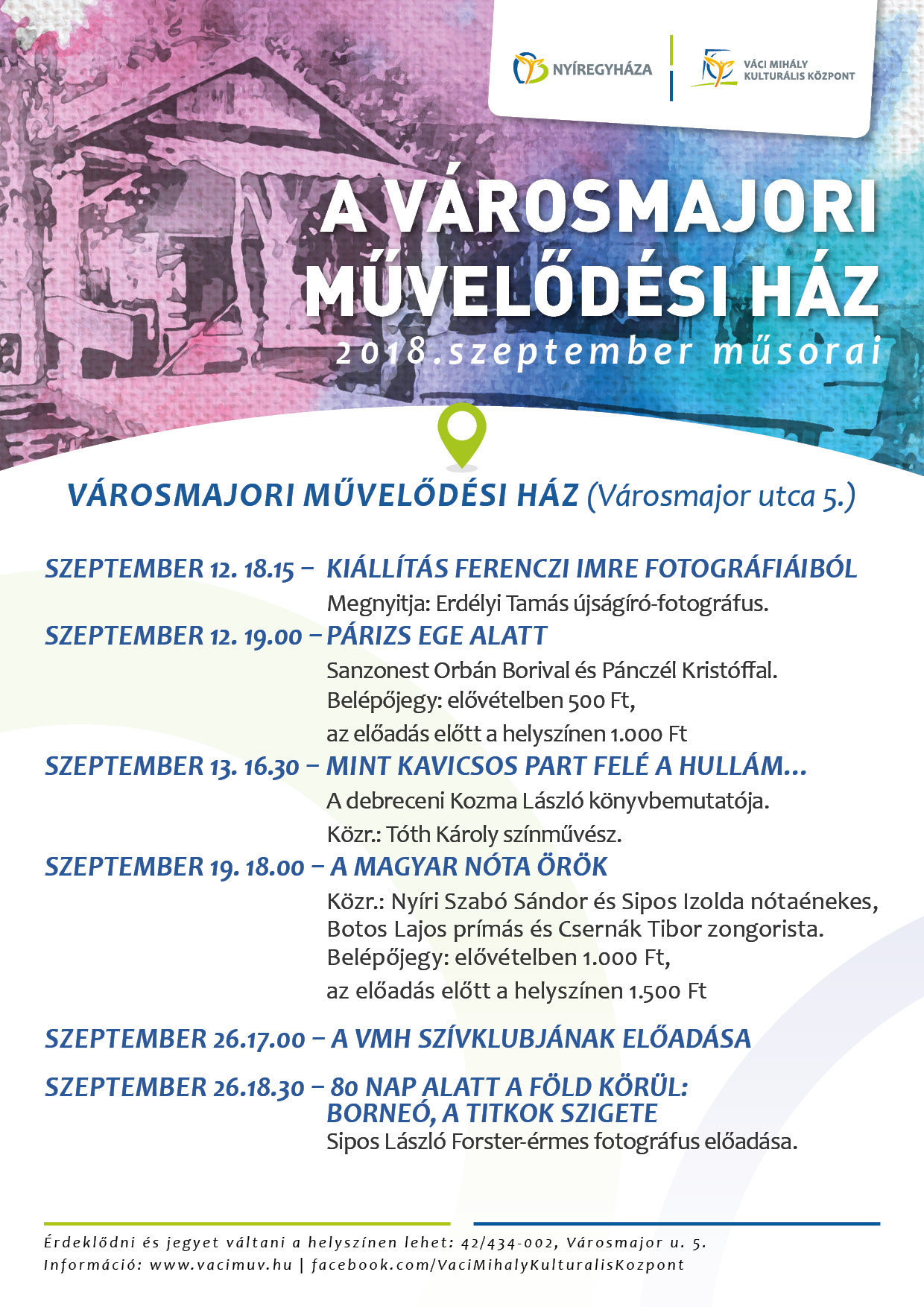 A Városmajori Művelődési Ház szeptemberi programajánlata