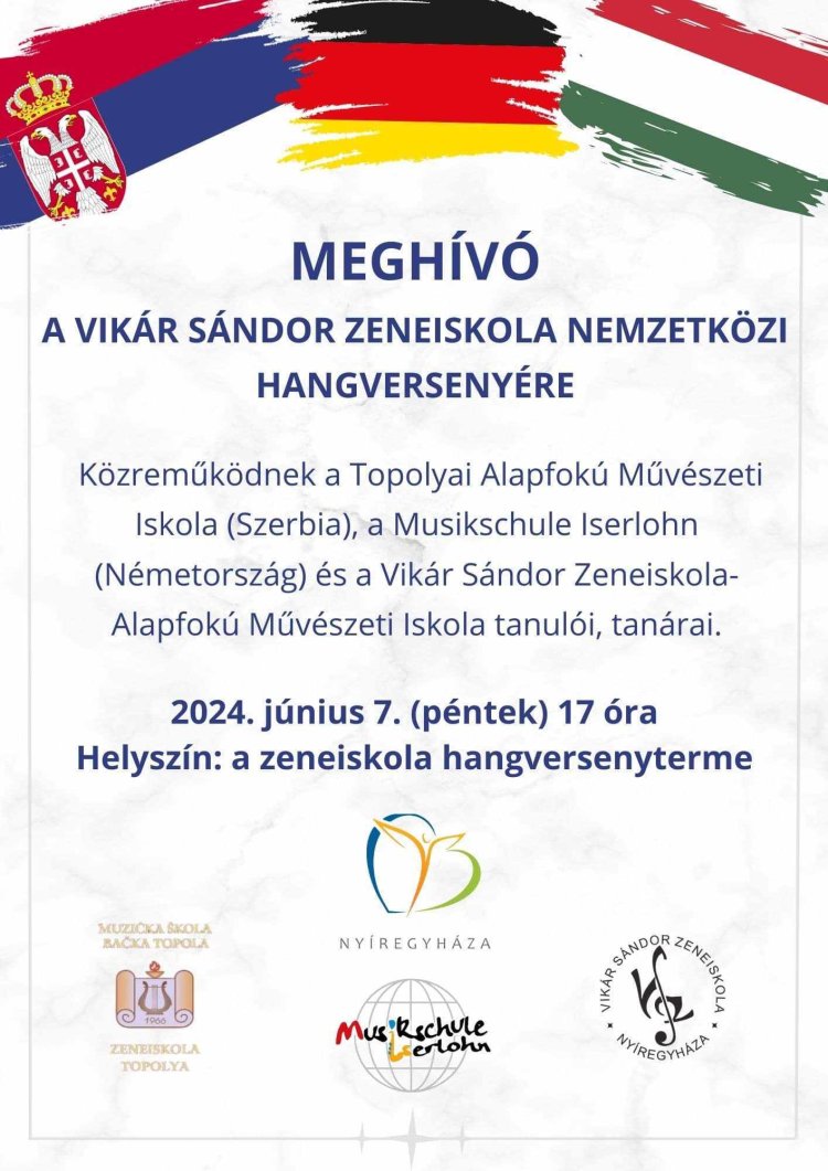 A Vikár Sándor Zeneiskola 2024. június 7-én, pénteken 17 órakor nemzetközi hangversenyt rendez