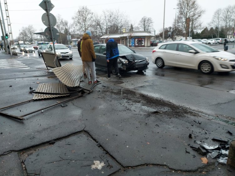 Egy járdát védő lemezborításnak, majd egy villanyoszlopnak ütközött egy személygépjármű miközben az Állomás térről a Petőfi utcára kanyarodott még pénteken.