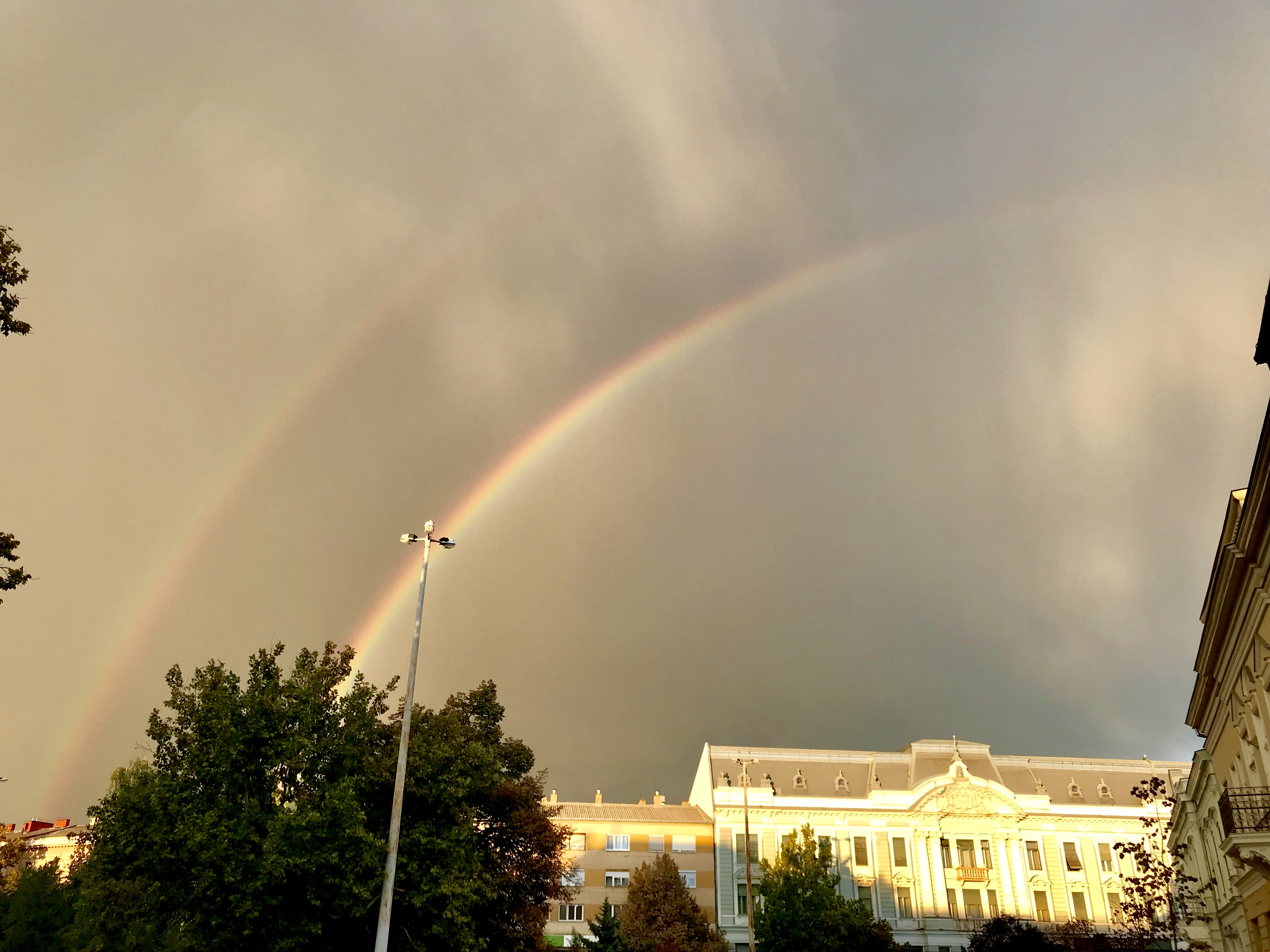 Csodálatos égi jelenségre figyelhettek fel ma délután a Nyíregyházi lakosok. Egyszerre két szivárvány is megjelent városunk égboltján.