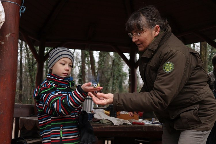 A program része a madárgyűrűzés is, ahol Petrilláné Bartha Enikő ornitológus szakember, a Pál Miklós Erdészeti Erdei Iskola vezetője segítségével közvetlen közelről megismerkedhetünk az etetőre járó madarakkal.
