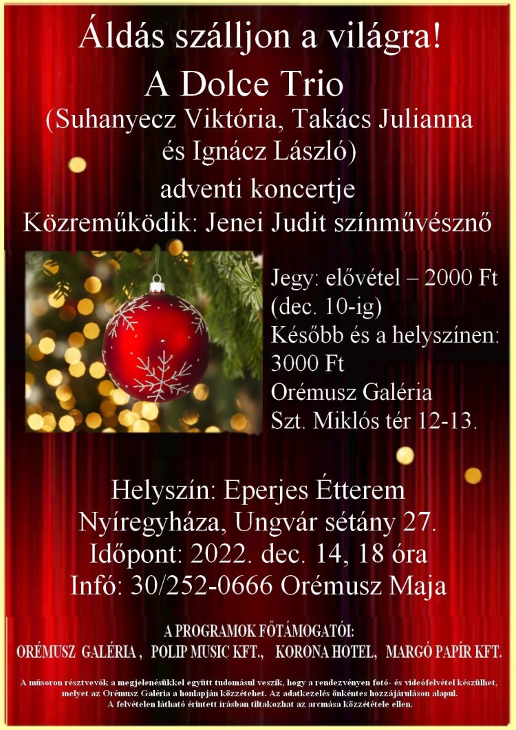 A megyeszékhely népszerű művésztanárai adnak adventi koncertet az Eperjes Étteremben december 14-én.