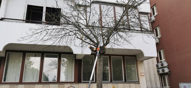 Több száraz ágat távolítottak el a szakemberek a Bessenyei téren. Balesetveszélyesek voltak, ezért kellett levágni őket.