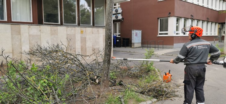Ágakat vágtak a Bessenyei téren - Balesetveszélyesek voltak a fák