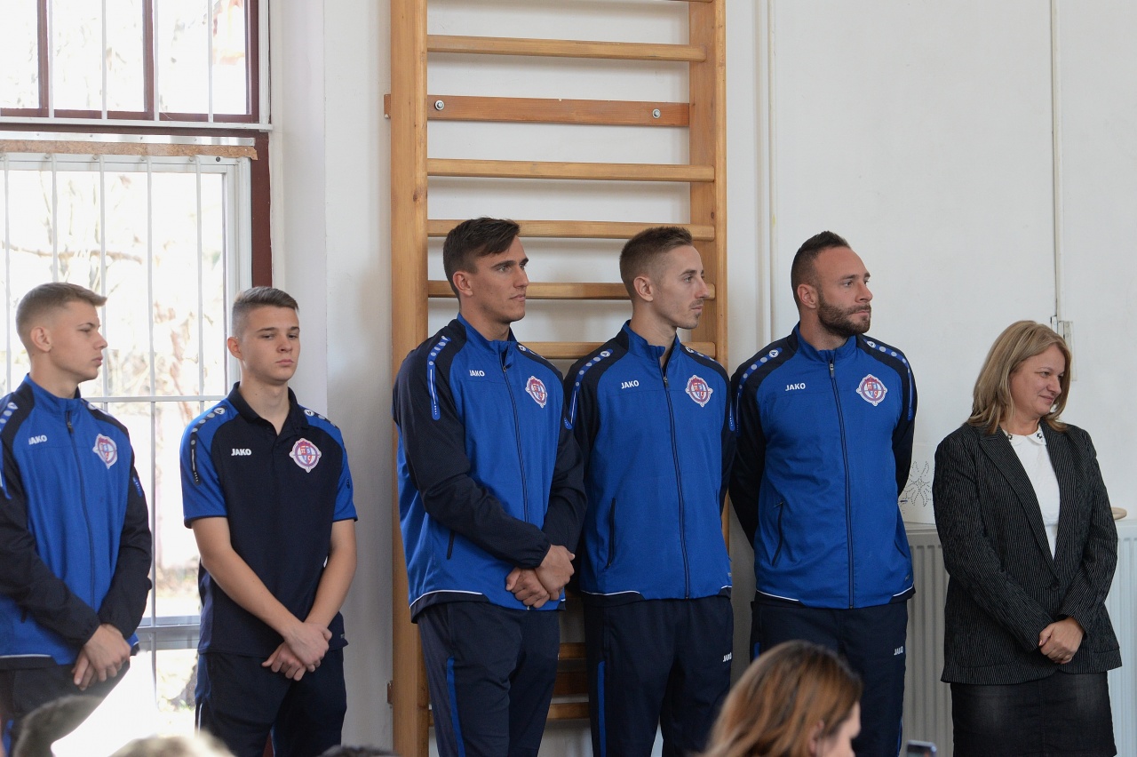 Ajándékot vitt a Szpari Mikulás - a Ridens iskola diákjait lepték meg a focisták