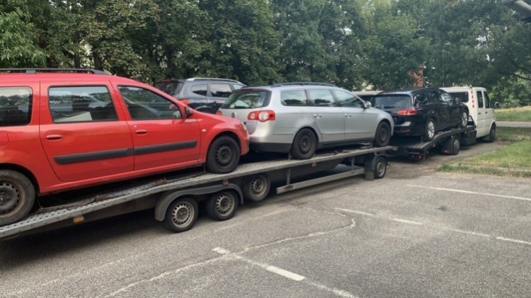 Nyugat-Európában felvásárolt, gyakran üzemképtelen használt autókat juttatnak el a keleti célországokba úgy, hogy egyszerre több gépkocsit szállítanak egymás mögé kapcsolt pótkocsikon, rakományukat hevenyészetten rögzítve.