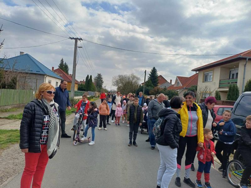 Pénteken az egyesület tagjai tojásfát díszítettek és húsvéti dekorációkkal szépítették a helyszínt. Szombaton húsvéti sétával kezdődött programjuk, ahol a legfiatalabbtól a szépkorú résztvevőkig mindenki teljesítette a távot. Útvonaluk a Meggyes, Varázs és Élet utca volt. Visszaérkezve minden gyerek s felnőtt csokinyuszit, bárányt és tojást kapott. Ezt követően egyesületük tagjai sonkát, kolbászt, tarját és húsvéti kalácsot kínáltak. Nem maradt el a verselés és a jó beszélgetések sem.