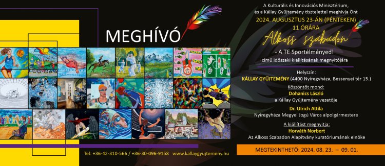 Augusztus 23-án (pénteken) 11.00 órakor szeretettel várják az Alkoss szabadon! - a Te sportélményed című időszaki kiállítás megnyitójára a Kállay Gyűjteménybe.