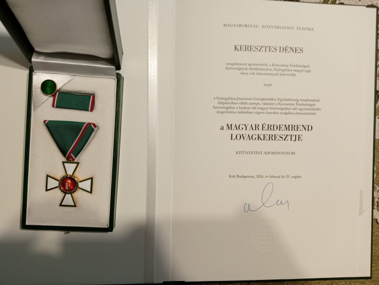 A Magyar Érdemrend Lovagkeresztje kitüntetésben részesült Keresztes Dénes, a Nyíregyháza-Jósavárosi Görögkatolikus Egyházközség közösségéért végzett elkötelezett munkájának elismeréseként.