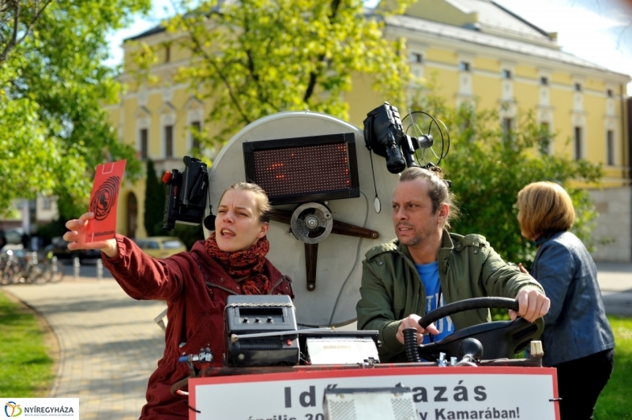 – Valójában minden időutazás retro. Nem is tudom, hogy a retro szót mire használjuk, de ha az ember vissza tudna menni az 50-es évekbe egy-másfél órára, lehet, hogy minden pillanatát retronak nevezné. Én magam még nem is gondolkodtam azon, hogy ha visszamehetnék az időben, mit néznék meg, de biztosan nem a Rákosi születésnapjára lennék kíváncsi. De a mi előadásunk most erről szól, ebből próbáltunk meg valami szellemeset kihozni.