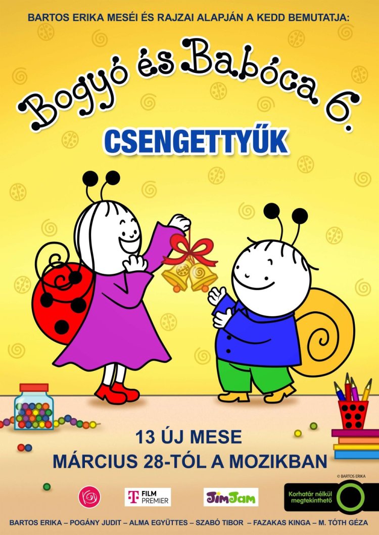 20 éves Bogyó és Babóca. A népszerű sorozat szerzője, a Magyar Nyelvőr Díjas, Pro Familiis, Aranykönyv és Janikovszky Éva-díjas írónő, Bartos Erika első kötete 2004-ben jelent meg. Az első rajzfilmsorozatot 2010-ben mutatták be, Bogyó és Babóca 1. – Barátság címmel. A sorozat és a belőle készülő moziváltozat sikere után következett a Mézeskalácsok, a Játszótársak, a Tündérkártyák és a Hónapok meséi című évad. Most pedig elkészült az újabb széria mozifilm változata Bogyó és Babóca 6. – Csengettyűk címmel. A film legelső moziélménynek tökéletes választás a legkisebb gyerekek számára is.