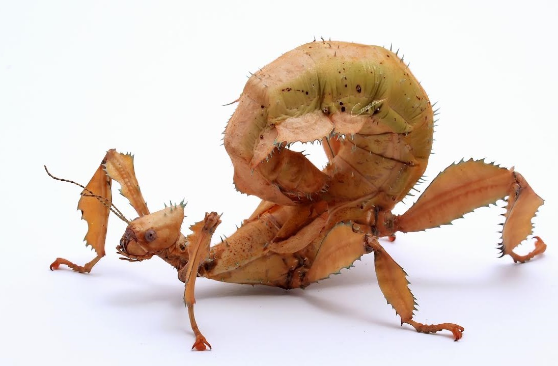 – Az egyik kedvencem a szellemsáska, ami akkora, hogy éppen belefér a tenyerembe. Róluk azt kell tudni, hogy a hímek és a nõstények teljesen más úton fejlõdnek. A nõstény testesebb és zöld színû, a hímnek pedig nagyobb szárnyai vannak, tud valamilyen szinten repülni és barna. Táplálkozás szempontjából egyébként nem egy problémás faj. Általában szederlevelet kapnak enni, de rengeteg dolgot megesznek: az alma- és körtelevelet, a borostyánt, a málna levelét és a rózsáét. A probléma csak az vele, hogy akár 3 és fél évig is elhúzódhat a kelés, ráadásul folyamatosan nedvesíteni kell a földet, amiben a peték vannak.