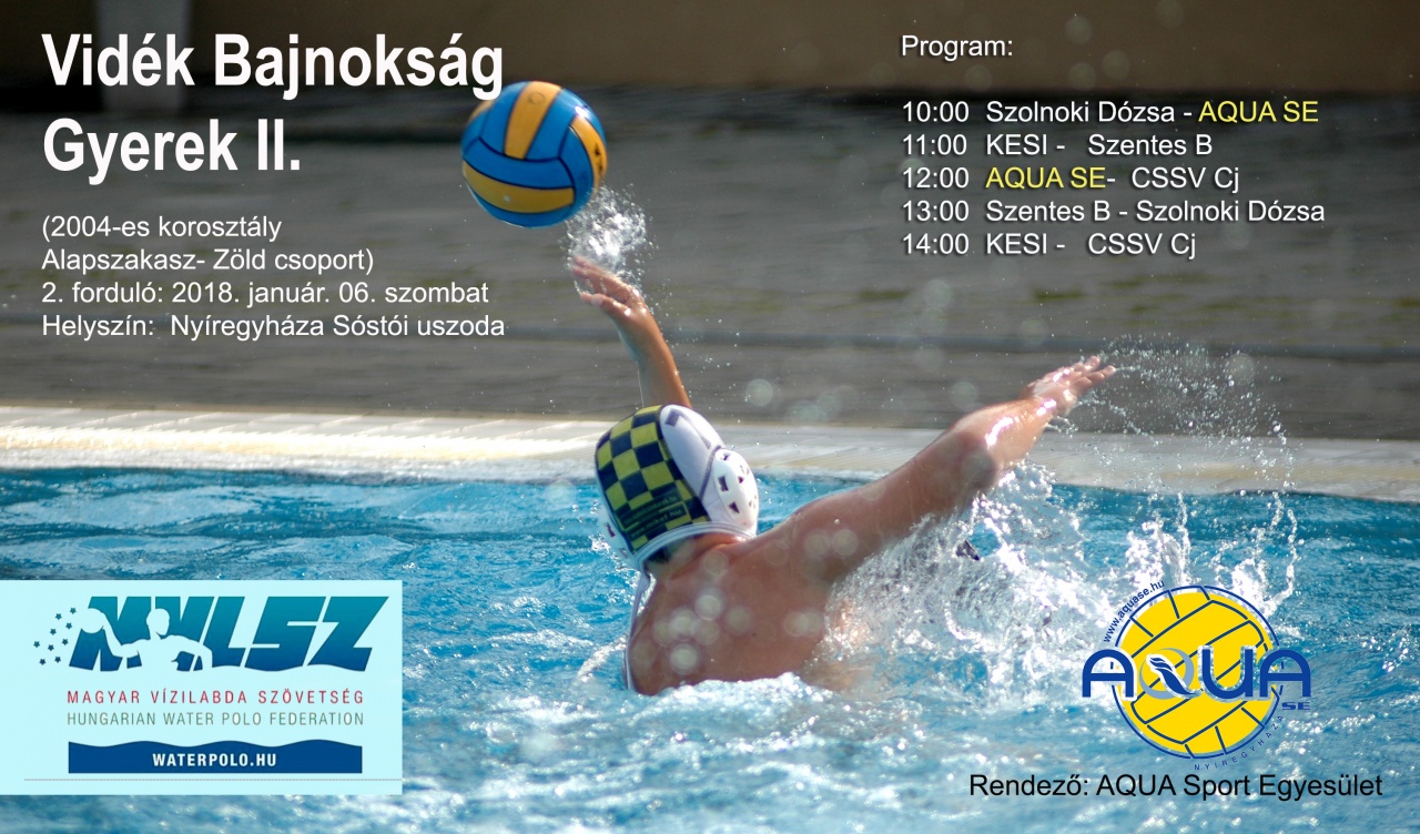A Gyerek II. korosztály hazai környezetben míg a serdülők idegenben kezdik meg 2018-as szereplésüket. A Gyerek II. csapat sóstói uszodában a Szolnok és a Kolozsvár csapataival játszik bajnoki meccset. A két hazai érdekeltségű mérkőzés mellett további mérkőzéseket is láthat a közönség, ahol a Szentes és a Kecskemét csapatai is vízbe ugranak. A serdülők a Cívis város uszodájában szerepelnek ugyan ezen a napon, ahol a Baja és a Szabadka csapatát kell legyőzni ahhoz, hogy tartani tudják a tempót a listavezető Debrecennel.