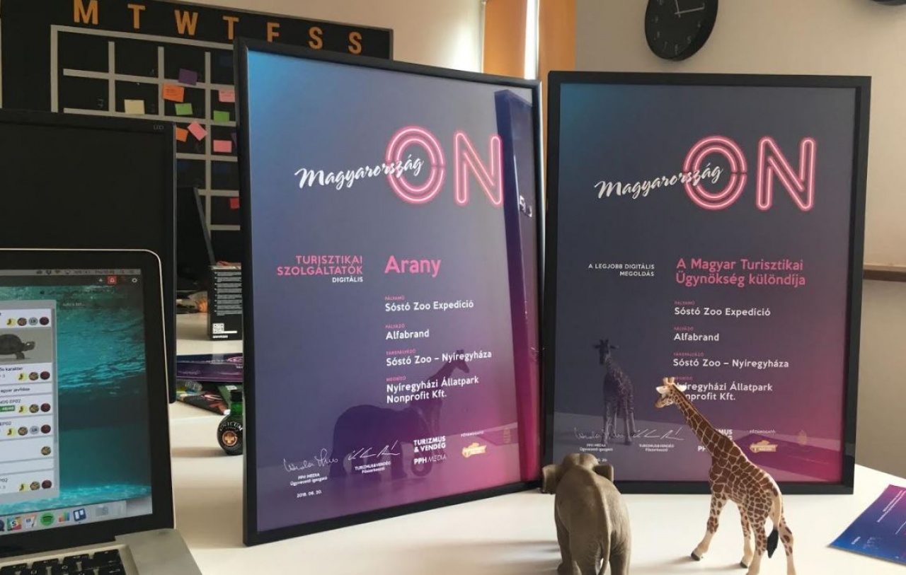 Ki ne emlékezne arra, amikor tavaly májusban három fehér oroszlán született a Nyíregyházi Állatparkban, vagy amikor bravúros és döbbenetes operációval megmûtötték Kito agyarát, de alig néhány napos hír, hogy világra jött Kwanza kislánya, egy újabb afrikai elefántborjú is. A Nyíregyházi Állatparknak ma már nemcsak Magyarországon van „neve”, hanem világmárkák között tartják számon. Megjelent már az állatpark videója japán tévéshow-ban, de 2016-ban 5 millió tejesdobozon is Kitóék, valamint Rutiék (kis borneói orangután) köszöntek vissza. Az ilyen és ezekhez hasonló kommunikációs megoldásokban pedig jelentõs szerepe van a szintén nyíregyházi Alfabrand Kft.-nek, az állatpark digitális kommunikációs ügynökségének is, akiket a hétvégén, a MagyarországON elnevezésû versenyen duplán is elismertek. A Sóstó Zoo Expedíció microsite-ért (online játék) a turisztikai szolgáltatók digitális kategóriáját megnyerve Arany díjat kaptak, valamint a teljes mezõny 9 kategóriájának digitális megoldásaiban is õk bizonyultak a legjobbnak. Turisztikai kommunikáció területén az elmúlt két év legjobb digitális megoldásával megnyerték a Magyar Turisztikai Ügynökség különdíját (képünkön).