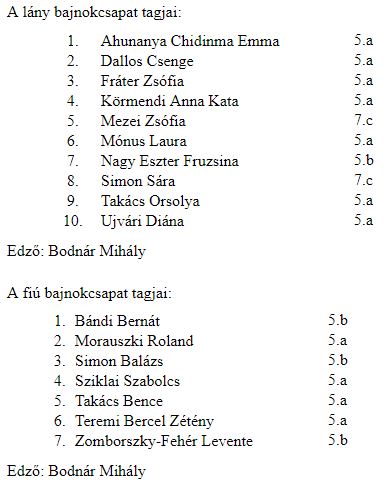 Ezzel az eredménnyel idén sikerült az U13-as korcsoport mindhárom divíziójában (Mixed, Open, Women) országos bajnoki címet szerezni az Apáczai IKSE csapatainak!