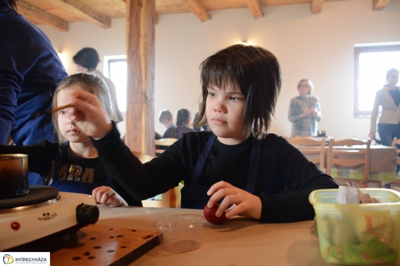 Viasz illata szállt a levegőben és füst gomolygott az Újlétai Magtárban, ahol rendhagyó napközis foglalkozás keretein belül ismerkedtek meg az iskolások a hagyományos húsvéti előkészületekkel. A főtt tojásokat három olyan módszerrel díszítették, amelyeket az ország keleti területein alkalmaztak 100-150 évvel ezelőtt. A beregi aranytojás készítés, a berzselés és savval maratás a mai gyerekeknek igazi érdekességnek számít.