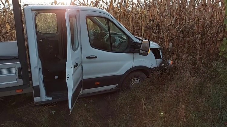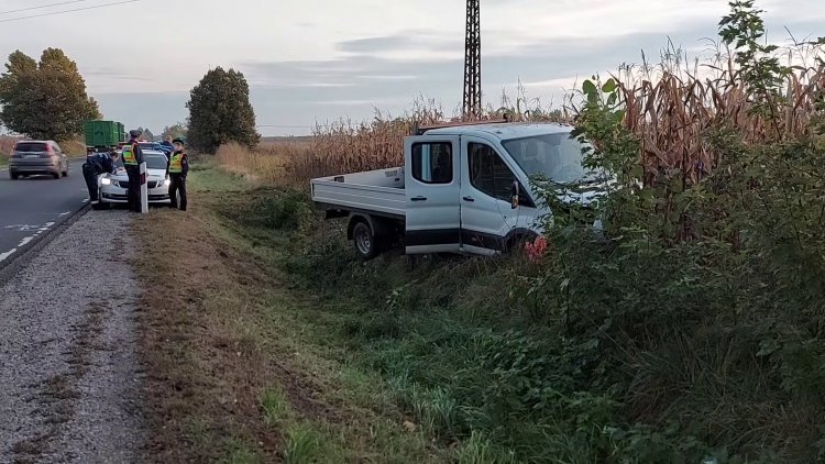 Egy kisteherautó áttért a menetirány szerinti szembe oldalra, ott fékezés nélkül az árokba hajtott, majd a kukoricásban állt meg. Ketten sérültek meg, a rendőrség vizsgálja a baleset okát, az sem kizárt, hogy elaludt a sofőr.
