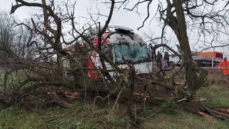 Hétfőn a 38-as számú főútvonalon egy nyergesvontatót vezető sofőr ismeretlen okokból letért az útról, árokba hajtott, ahol több akácfának is nekiütközött.