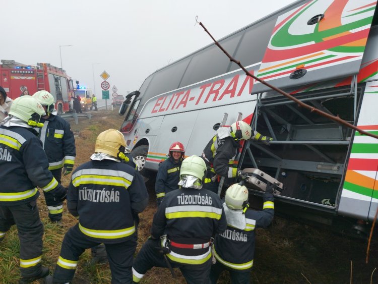 Árokba zuhant egy ukrán busz Nyíregyháza közelében, öten megsérültek