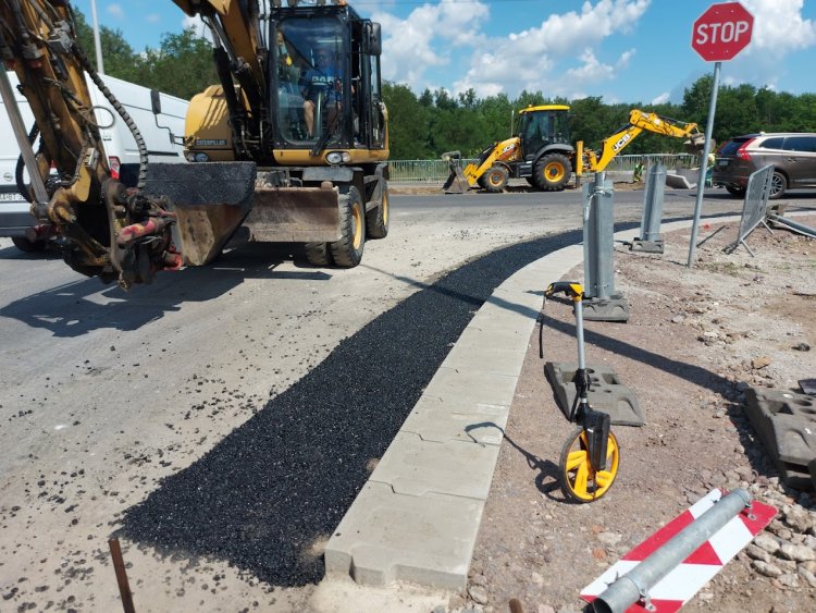 Megkezdődött az aszfaltozás az átépítés alatt álló Kőlaposi csomópontban.